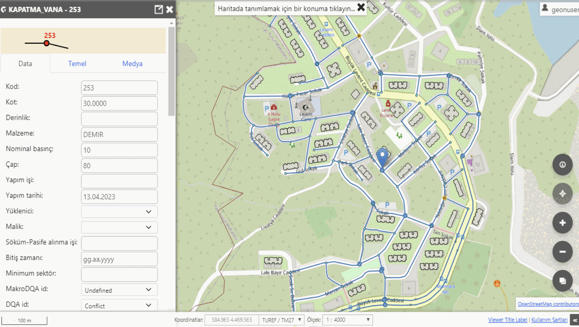 Su şebekelerinde istediğiniz bir noktadan başlayarak suyun ulaşacağı tüm hat ve noktaları tespit edebilirsiniz.